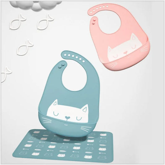 Silikon Lätzchen mit Auffangschale – Weiches Baby Lätzchen mit Tiermotiv