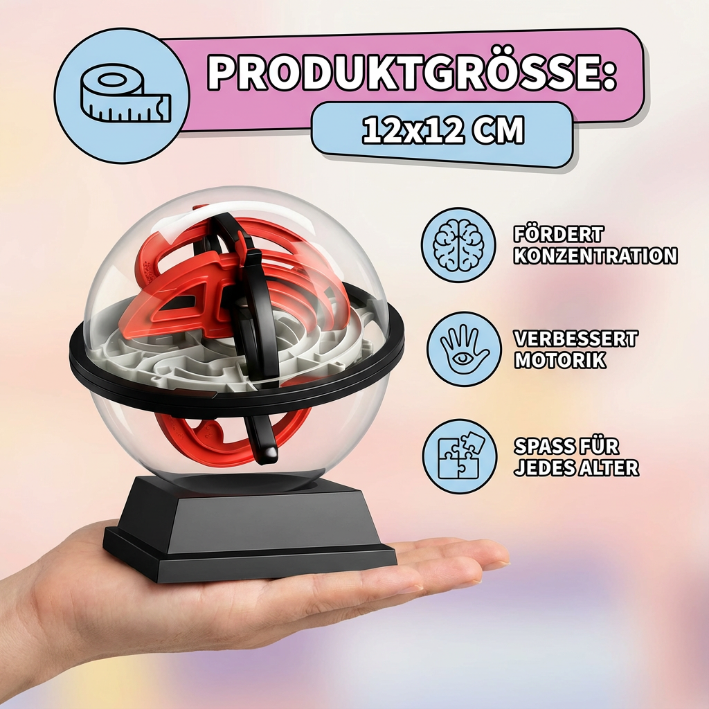 Entdecke das faszinierende 3D Labyrinth Puzzle Kugel – eine spannende und fesselnde Herausforderung für Denksportfreunde jeden Alters! Dieses innovative Puzzle fördert Konzentration, Geduld und Problemlösungsfähigkeiten, während es gleichzeitig eine unterhaltsame Möglichkeit bietet, das logische Denken zu schärfen. Tauche ein in die Welt der Rätsel und erlebe die Freude, das Labyrinth zu meistern.
