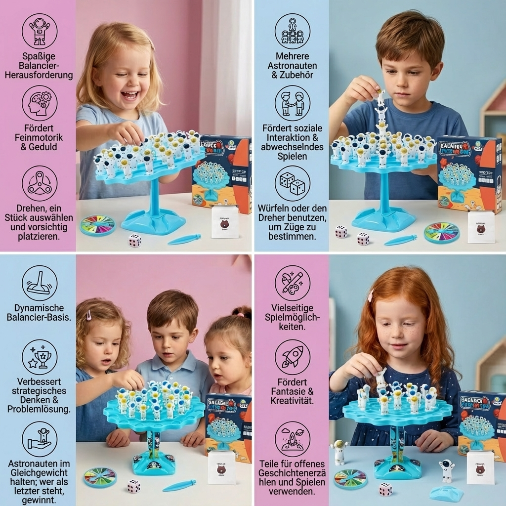 "Das Astronauten Balancierspiel ist ein Riesenspaß für die ganze Familie! Es fördert Geschick und Konzentration und sorgt immer wieder für spannende Momente und viel Gelächter."