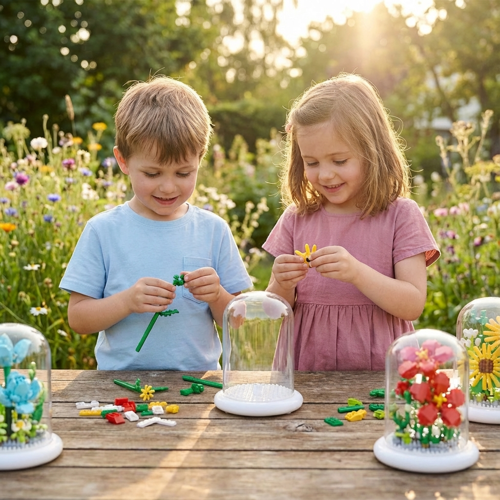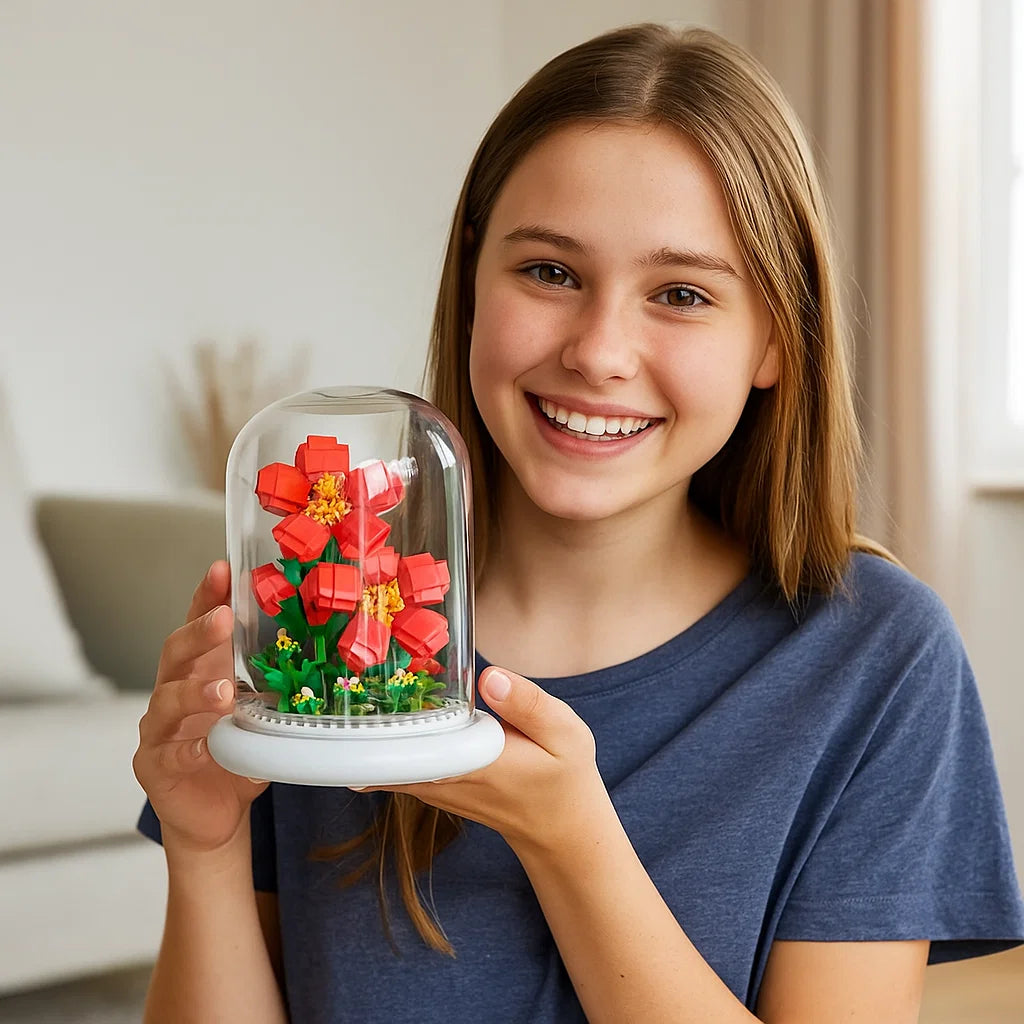 Anders als echte Blumen benötigt diese Baustein Blume weder Wasser noch Pflege. So genießen Sie die Schönheit einer Blüte, die niemals vergeht.