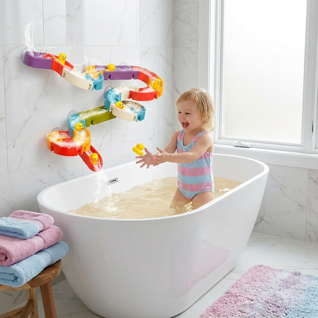Die Entenrutsche Badespielzeug ist nicht nur ein Spielzeug, sondern auch die Lösung für langweilige Bademomente! Mit der einfach zu montierenden Rutsche und den farbenfrohen Enten verwandelst Du das Badezimmer in einen Ort voller Abenteuer und Freude. Die Kleinen können den Enten zusehen, wie sie auf der Rutsche hinuntergleiten und im Wasser herumplanschen.