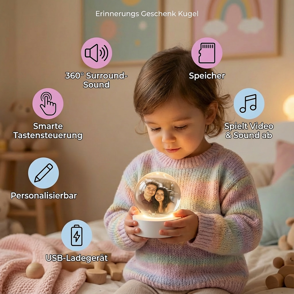 Die Erinnerungs Geschenk Kugel ist wunderschön verarbeitet und ein echter Blickfang. Ich habe sie meiner Mutter geschenkt, und sie war zu Tränen gerührt.