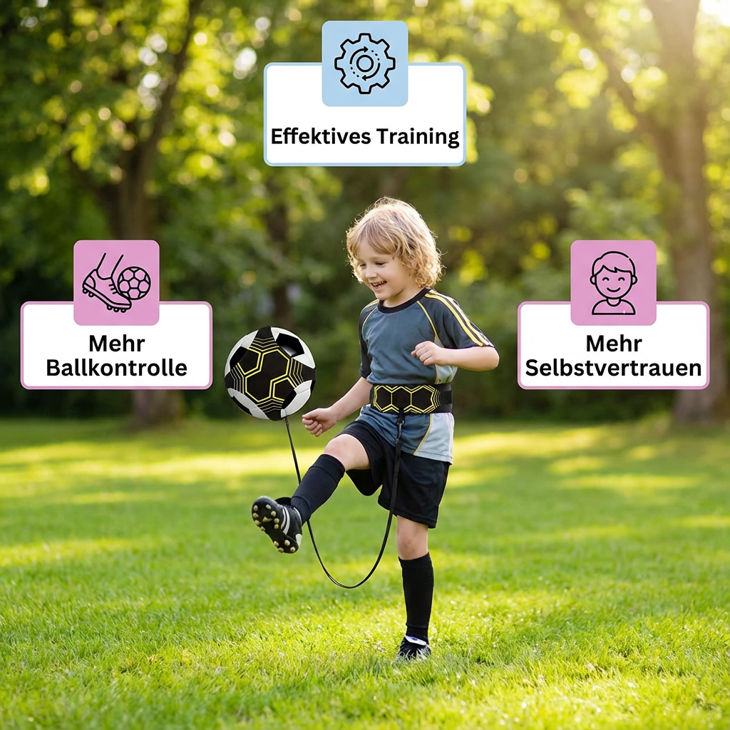 Der Trainingsgürtel ermöglicht es, Ballkontrolle gezielt zu üben, ohne dass ein Mitspieler notwendig ist. So kannst du jederzeit und überall an deiner Technik feilen.