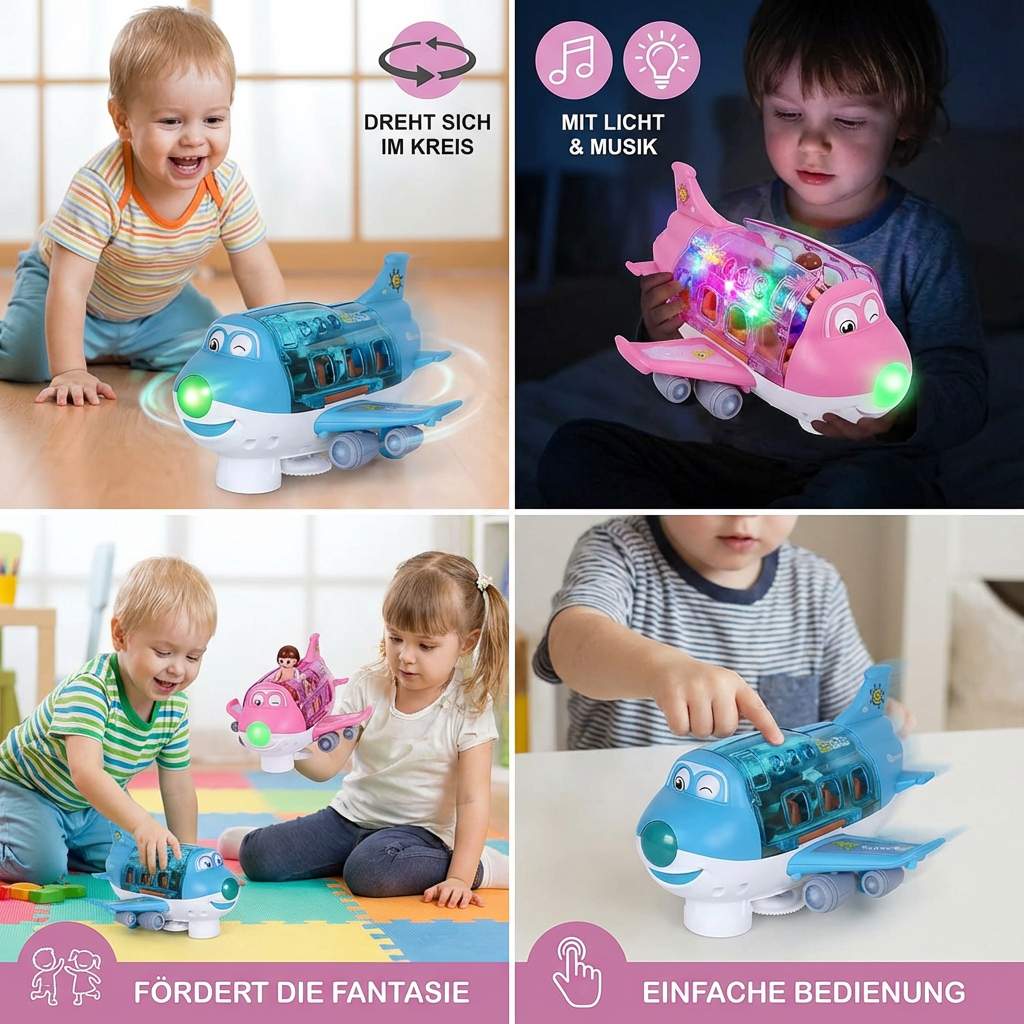 Meine Tochter war sofort begeistert, als das Flugzeug zu tanzen begann. Die bunten Lichter und die Musik zaubern ihr jedes Mal ein Lächeln ins Gesicht.