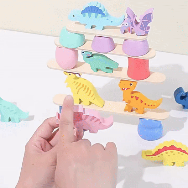 Das Montessori Dinosaurier Stapelspiel ist nicht nur ein Spielzeug, sondern auch ein wertvolles Lernwerkzeug. Es hilft Deinem Kind dabei, Gleichgewicht und räumliches Denken zu entwickeln, während es mit den liebenswerten Dino-Figuren spielt. Ob allein oder gemeinsam mit Freunden und Geschwistern – das Stapeln und Balancieren bietet stundenlange Unterhaltung.