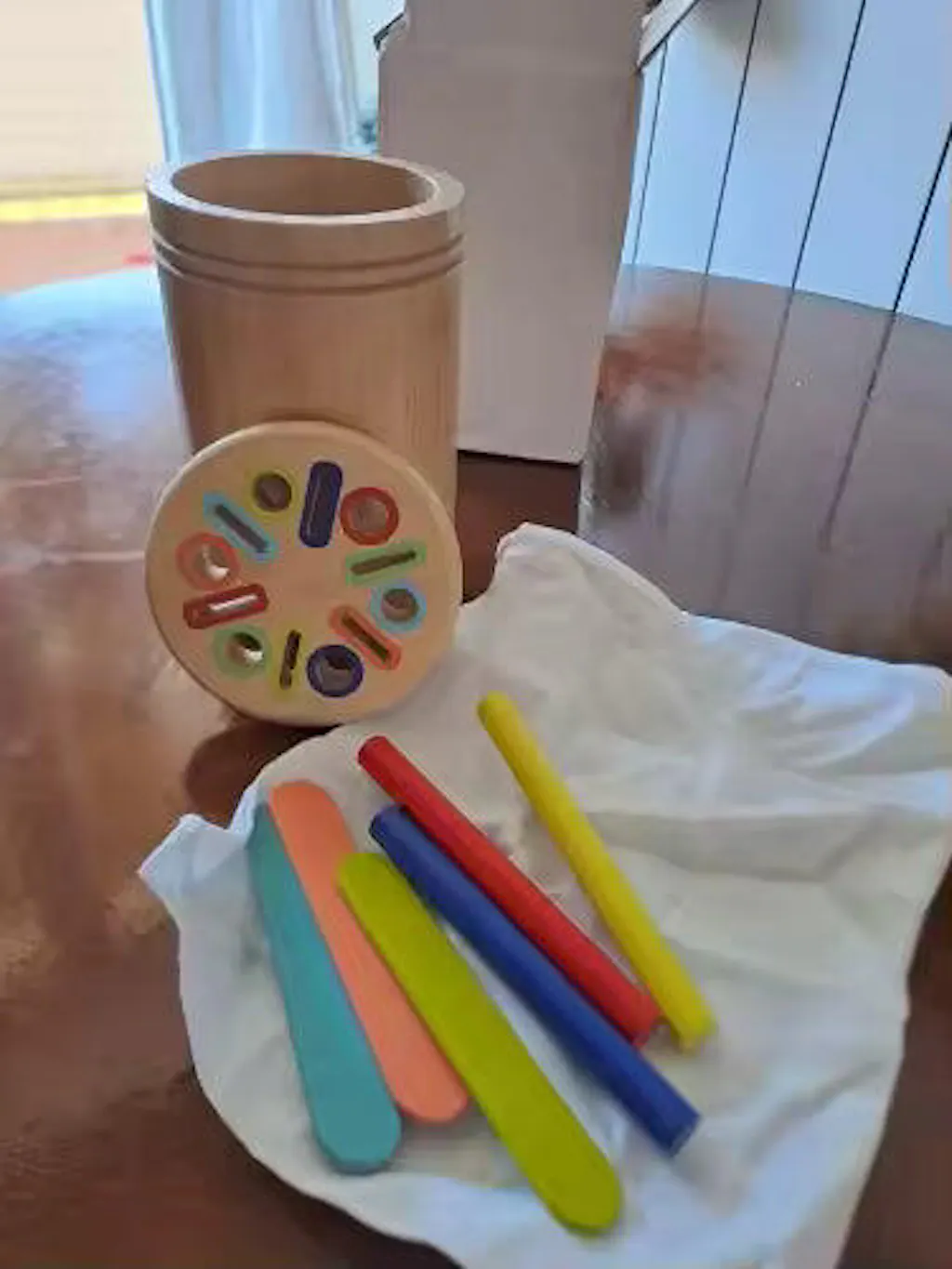 Ob als Motorikspielzeug, Farbsortierer oder erstes Logikspiel: Dieses multifunktionale Holzspiel wächst mit und begleitet dein Kind über mehrere Entwicklungsstufen hinweg.