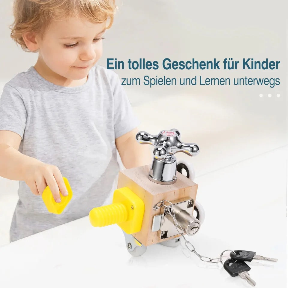 Der Montessori Spiel&Lern Würfel ist ein kompaktes, multifunktionales Lernspielzeug, das auf die Förderung von Motorikfertigkeiten abzielt. Mit verschiedenen Schlössern, Schrauben und Verschlüssen, die auf einem 15cm x 8cm x 10cm großen Würfel angebracht sind, stimuliert er den Tastsinn und lädt zum Entdecken ein. Dieses interaktive Werkzeug ist ideal für das Erlernen praktischer Lebensfähigkeiten, stärkt die kognitive Entwicklung und fördert die Problemlösungsfähigkeit von Kindern, indem es sie ermutigt, durch direktes Tun zu lernen und zu verstehen.