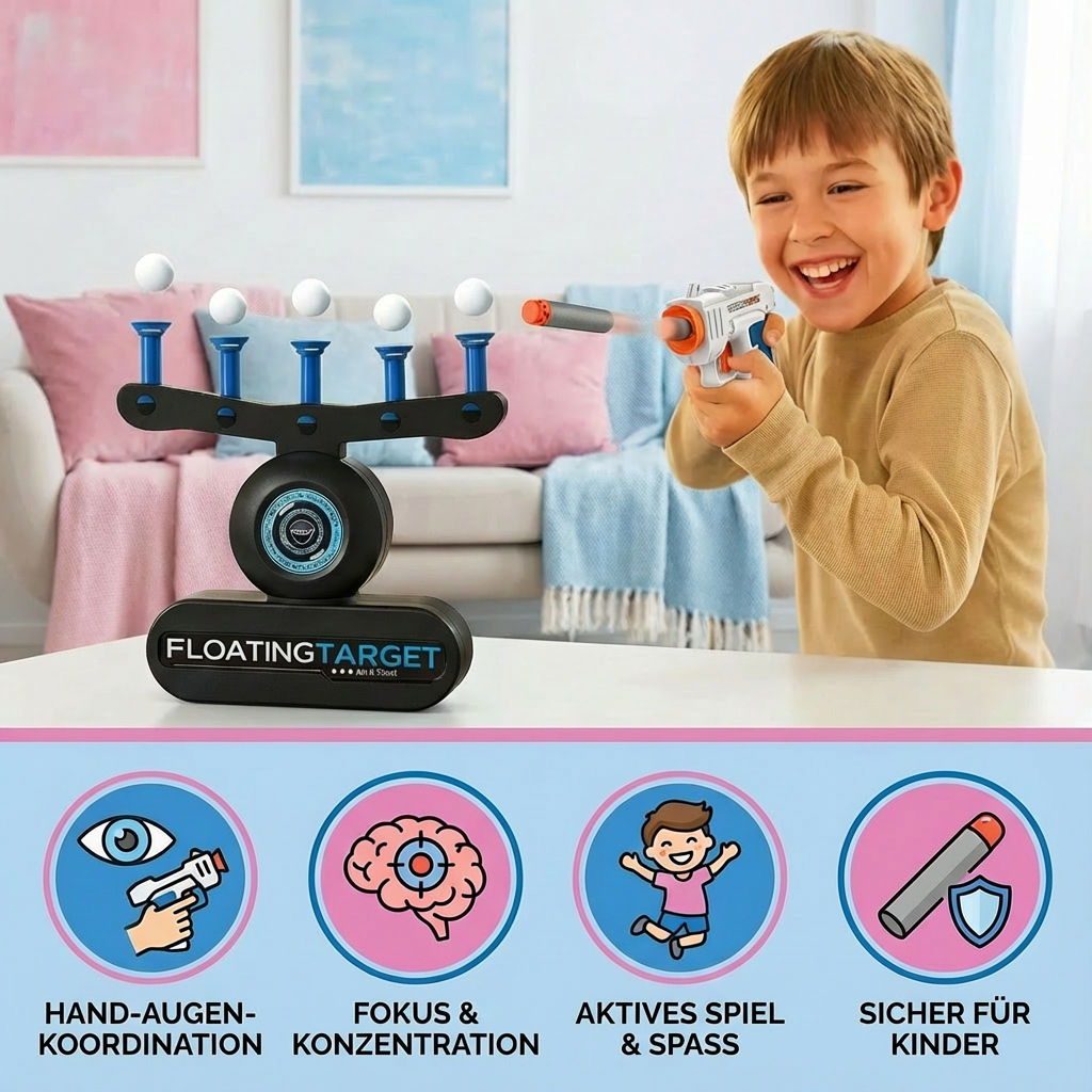 Dieses aufregende Schwebende Bälle – Zielschuss Spielzeug bringt Bewegung und Spannung in jedes Kinderzimmer. Die schwebenden Bälle sorgen für eine völlig neue Herausforderung, die Geschicklichkeit, Konzentration und Reaktionsfähigkeit spielerisch trainiert. Egal ob allein oder im Wettkampf mit Freunden – dieses Spiel sorgt für unvergessliche Momente voller Spaß.