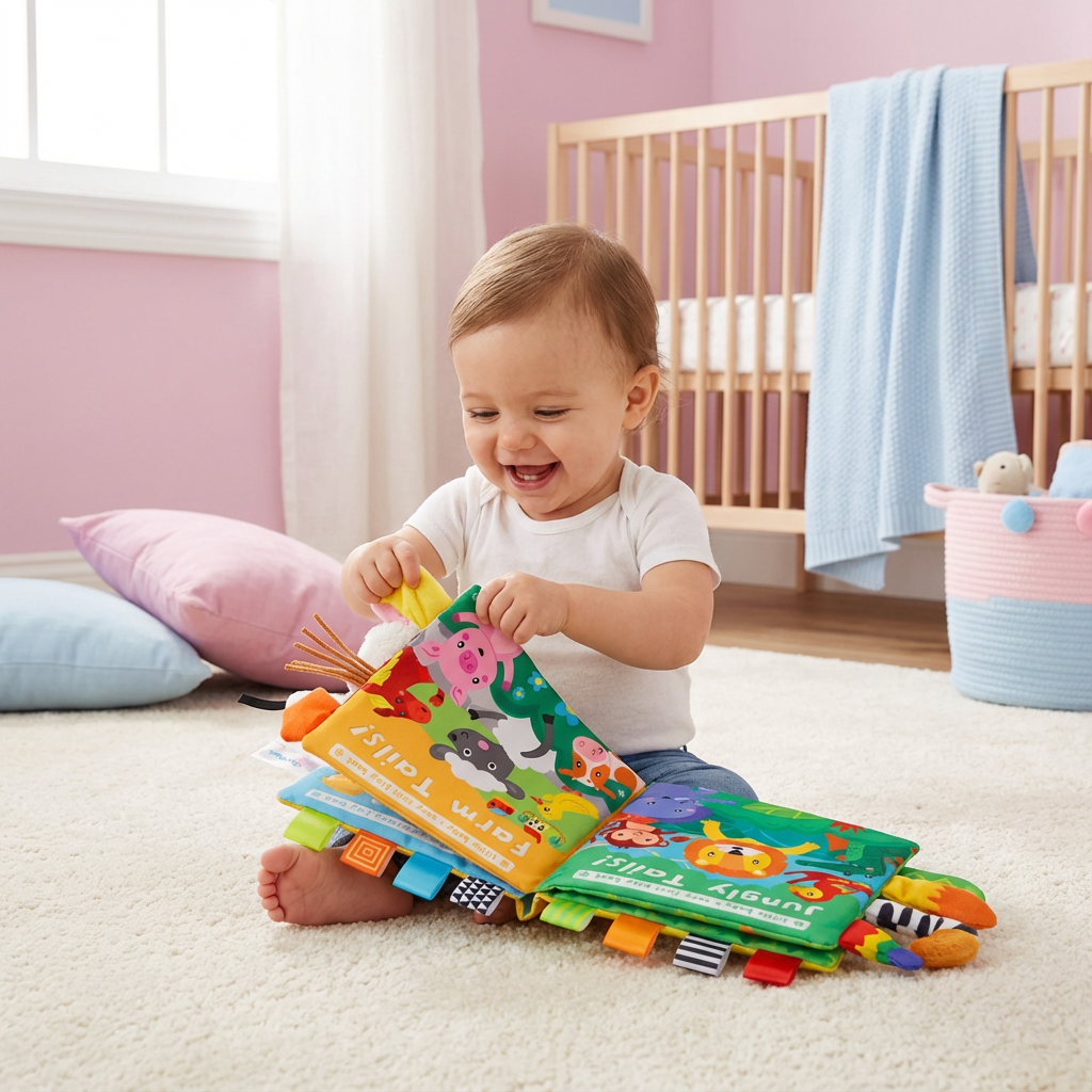 Das Sensorische Kinder Geschichten Buch für Kleinkinder ist das perfekte Spielzeug, um die Neugier und Kreativität Ihres Kindes zu fördern. Mit interaktiven, taktilen Elementen und liebevollen Illustrationen wird jede Seite zu einem Abenteuer, das nicht nur die Fantasie anregt, sondern auch die Sinne schult. Dieses Buch hilft, die kognitiven Fähigkeiten, die Sprache und die motorischen Fähigkeiten der Kleinen zu entwickeln, während sie gleichzeitig Geschichten entdecken.