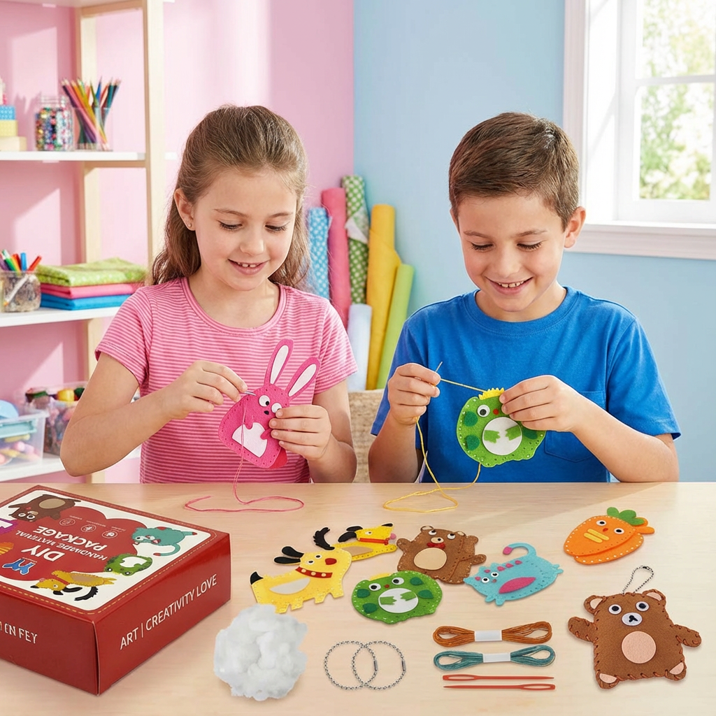 Das Sicheres Filz Tier Set Zum Selber Nähen ist die perfekte kreative Beschäftigung für Kinder. Mit diesem Set können Kinder auf spielerische Weise ihre handwerklichen Fähigkeiten verbessern, indem sie süße Tiere aus Filz nähen. Dank der kindersicheren Materialien und der einfachen Anleitung ist das Set ideal für kleine Bastelmeister, die ihre Feinmotorik und Kreativität fördern möchten.