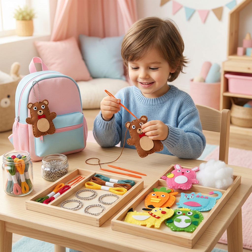 • 🧵 Einfache Handhabung: Die vorgefertigten Löcher und das kindgerechte Nähmaterial machen das Nähen kinderleicht. • 🦊 Süße Tierfiguren: Die Kinder können Tiere wie Vögel und andere lustige Designs nähen, die sie stolz präsentieren können. • 🎨 Fördert Kreativität: Kinder können die Farben und Formen der Tiere nach ihren Wünschen gestalten. • 🧸 Sichere Materialien: Das Set besteht aus sicheren Filzmaterialien, die für Kinder geeignet sind und keine scharfen Kanten haben.