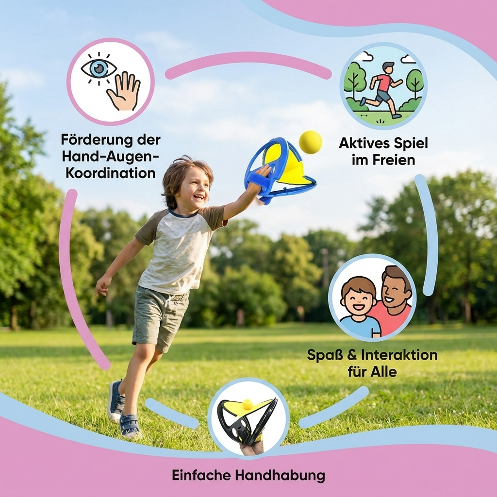 "Das Spaßige Fang Ball Spiel ist ein riesiger Hit bei meinen Kindern! Es fördert nicht nur ihre Koordination, sondern sorgt auch für stundenlangen Spaß im Garten mit der ganzen Familie."