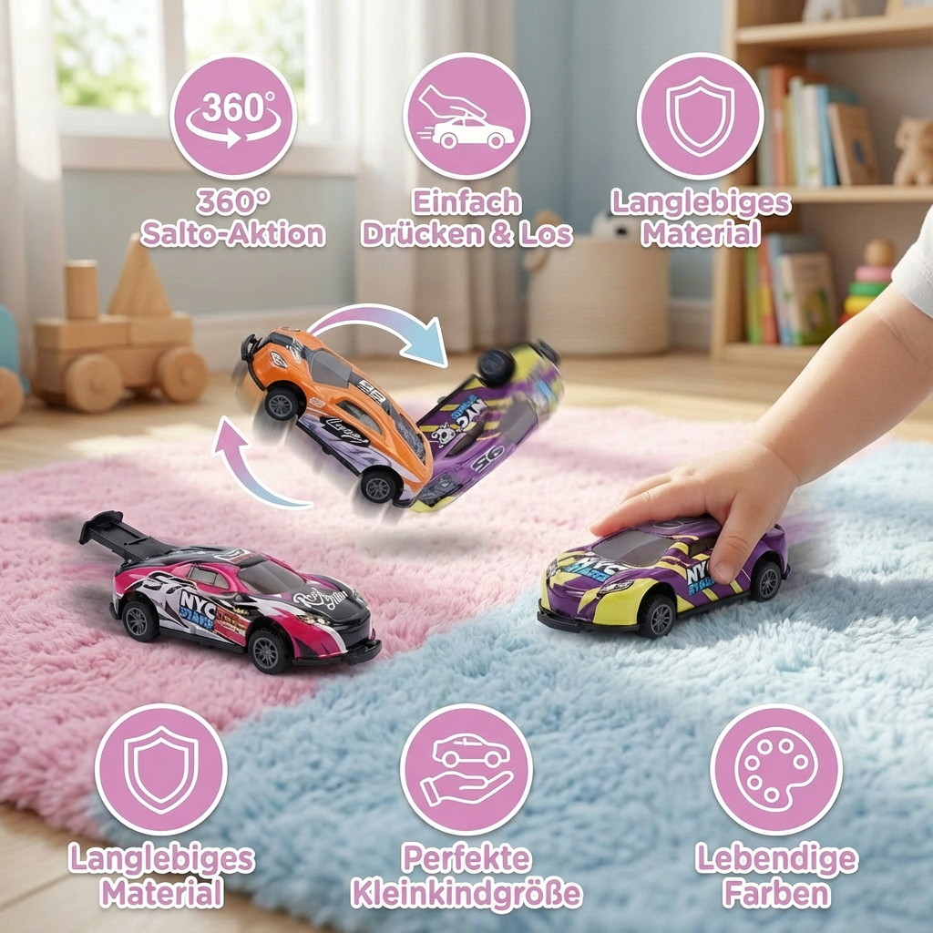sind begeistert von den spektakulären 360°-Drehungen und Stunts, die die Autos durchführen können.