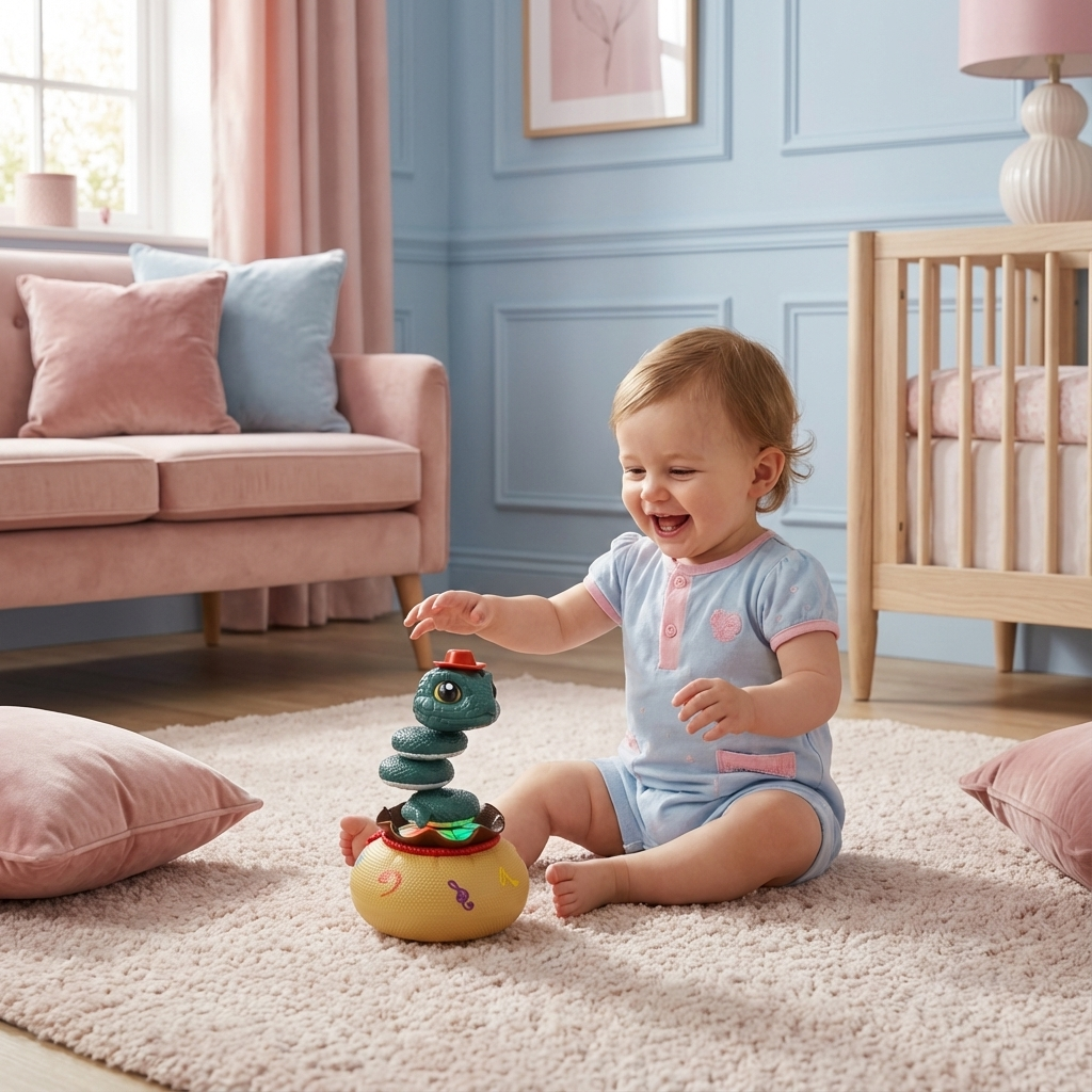 Das tanzende Schlangenspielzeug reagiert auf Bewegungen und Musik, wodurch Kinder aktiv zum Mitmachen angeregt werden. Es unterstützt spielerisch die körperliche Entwicklung und fördert gleichzeitig Kreativität und Rhythmusgefühl.