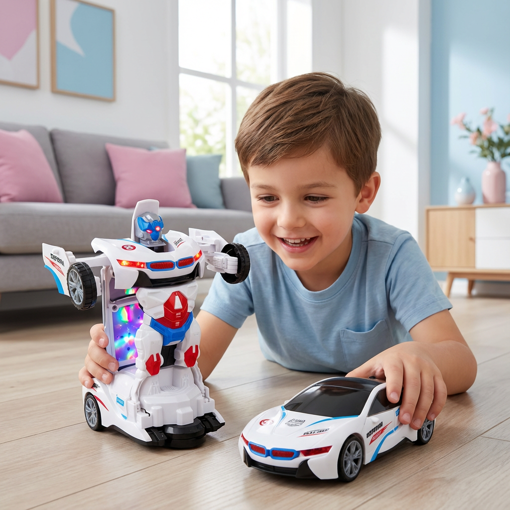 Das Transformierende Auto Spielzeug bringt futuristische Renn-Action und fantasievolles Rollenspiel zusammen. Auf Knopfdruck verwandelt sich das stylische blitzschnell in einen coolen Roboter und sorgt mit spektakulären Licht und Soundeffekten für leuchtende Kinderaugen. Ob wilde Verfolgungsjagd oder heroischer Robotereinsatz – dieses Spielzeug verwandelt jeden Spielmoment in ein Abenteuer.