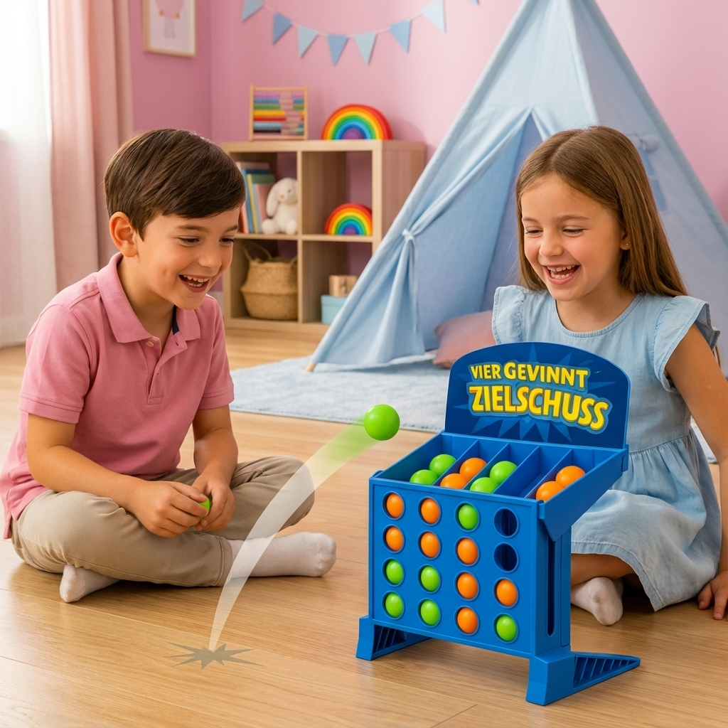 Dieses actionreiche Spiel bringt das klassische Vier Gewinnt-Prinzip auf ein neues Level! Statt einfach nur Spielsteine zu setzen, heißt es hier: Zielen, Bouncen und Treffen! Mit einem Satz farbenfroher Bälle und einem cleveren Spielfeld ist jedes Match voller Spannung, Spaß und Bewegung – ideal für Kinder und Erwachsene gleichermaßen.